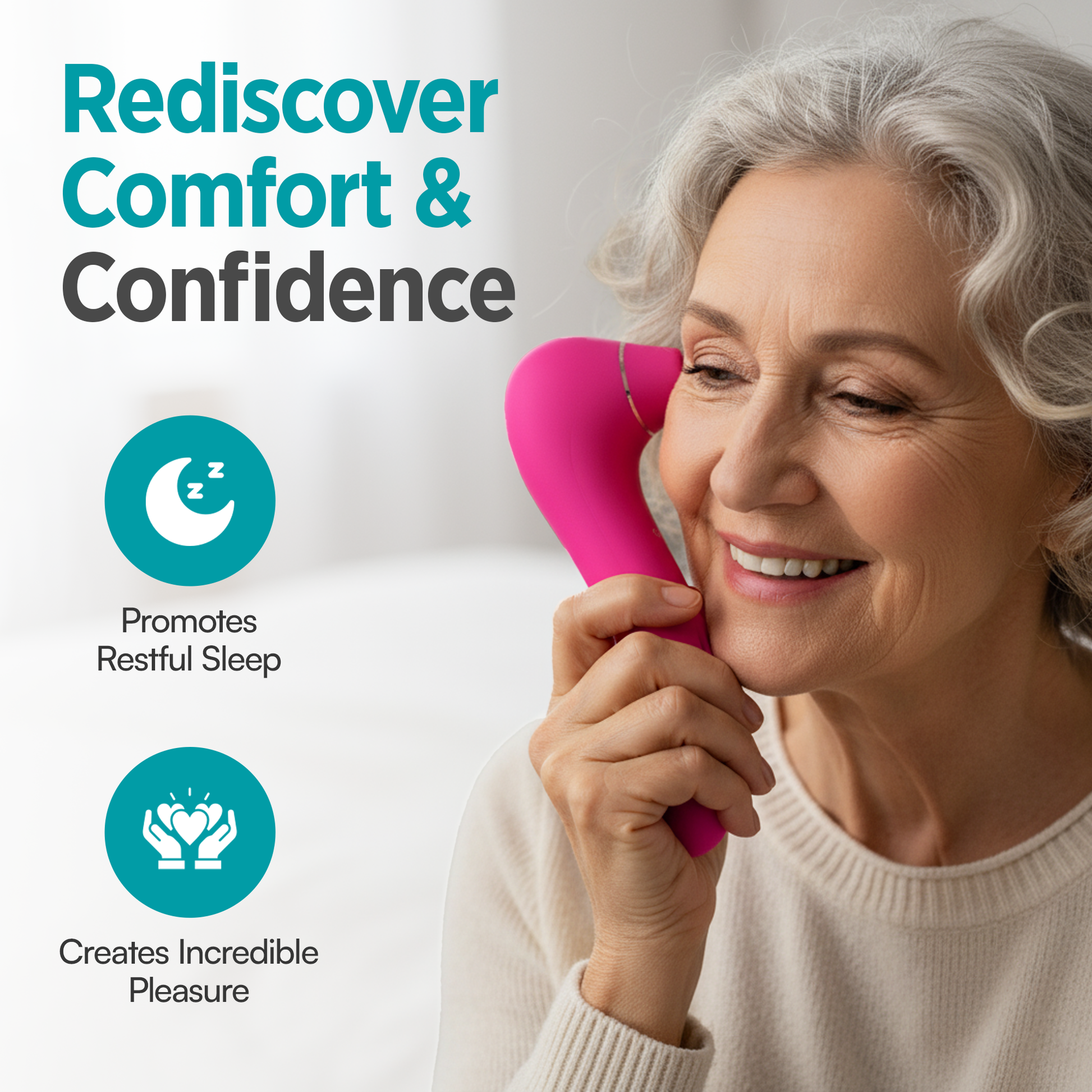A dual-action air-pulse massager that restores blood flow, rebuilds natural moisture, and brings back sensitivity that time and hormones took away. It's not a toy. It's a reset button for her body. Recommended by pelvic floor therapists. Trusted by 14,000+ women.